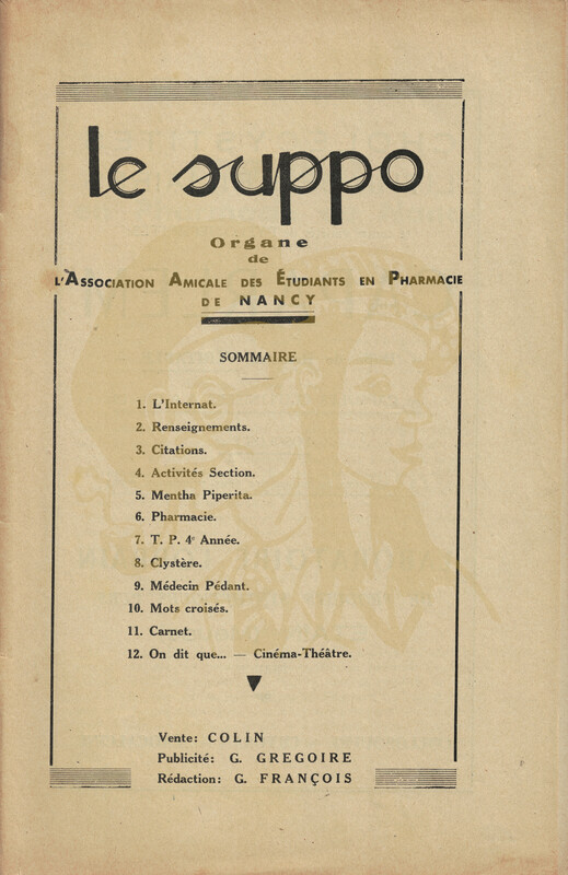 Le Suppo - Association Amicale des Etudiants en Pharmacie de Nancy - N° 77 Mars 1948